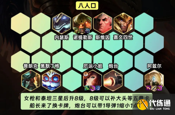 女枪和泰坦三星后升8级,8级可以补大头等五费卡,船长来了之后替换卡牌;