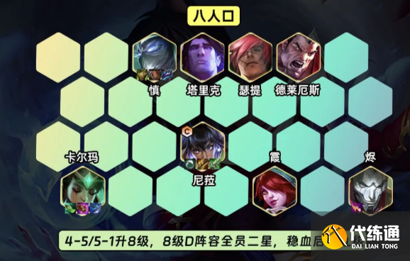 4-5/5-1升8级,8级D出阵容全员二星稳血,稳血后攒金币升9级