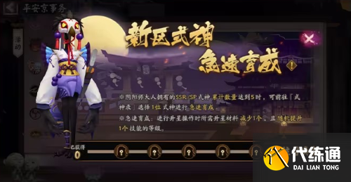 触发式神急速育成期间大人已选定的育成式神不可更换如果大人有多个同类式神只有一个式神可在其每个升星阶段