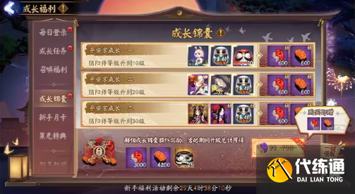 新手福利活动期间开启系列任务任务,随阴阳师等级提升逐步解锁,完成对应任务将获得大量育成材料、SSR阶式神辉夜姬等丰厚奖励