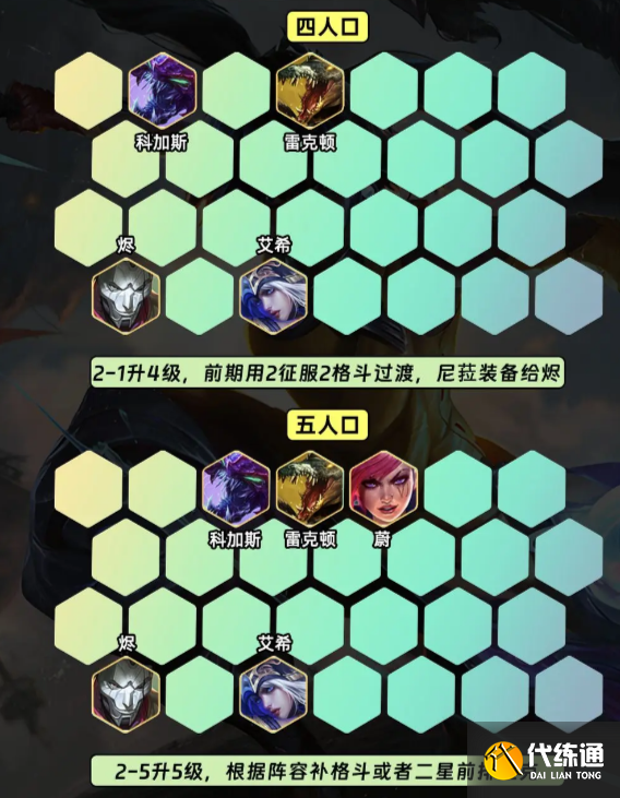 2-5升5级,5级根据阵容补格斗或者上二星前排坦克