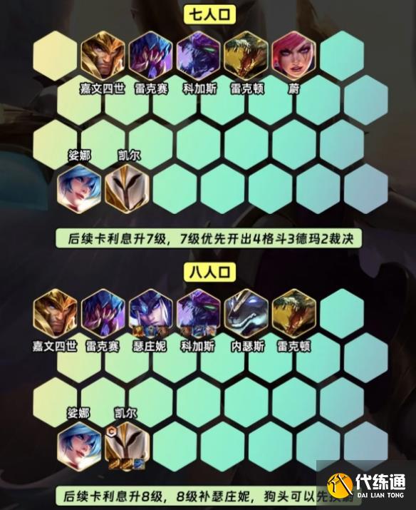 后续卡利息升7级,7级优先开出4格斗3德玛2裁决