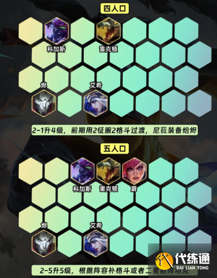 2-5升5级,5级根据阵容补格斗或者上二星前排坦克