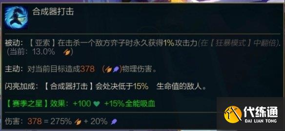 亚索的强度就是因为它击杀可以增加攻击力,又是一费卡(想到了叠上叠狗头),选还有生命和吸血加成,带了装备大招还能斩杀低血敌人。