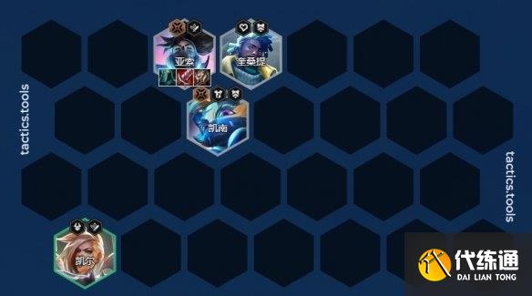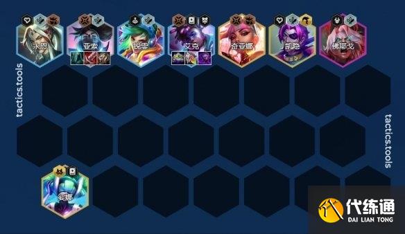 8人口根据这时候一般会根据选秀看能不能拿到转职,有刀锋转职可以开7刀锋,真实伤害就可以考虑下刀锋棋子上真实伤害棋子。没有合适转职基本就是如下图了,8人口补充琴女等别的五费卡来补充战斗力即可。