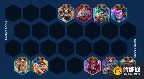 8人口补巴德和卢锡安。卢锡安没来可以用女枪一起开爵士乐队,这个阵容的核心就是拼多多超多的羁绊数量。利用爵士羁绊每个羁绊都会增加血量和输出,这样瑞文的输出和坦度都会提升。