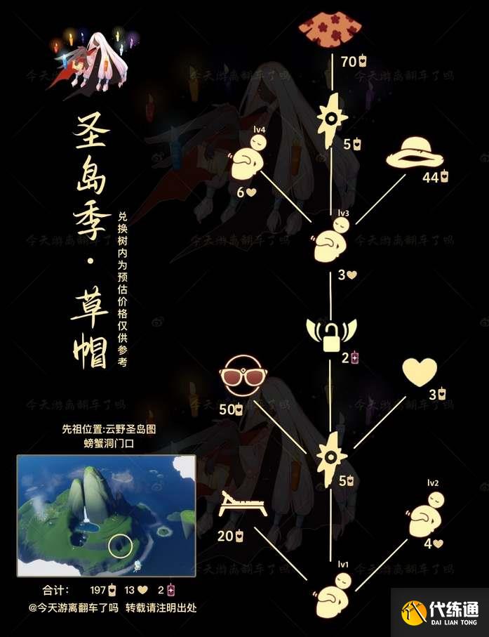 3、先祖的兑换图如下所示,兑换所有的物品需要197个蜡烛,13爱心和2个升华蜡烛。