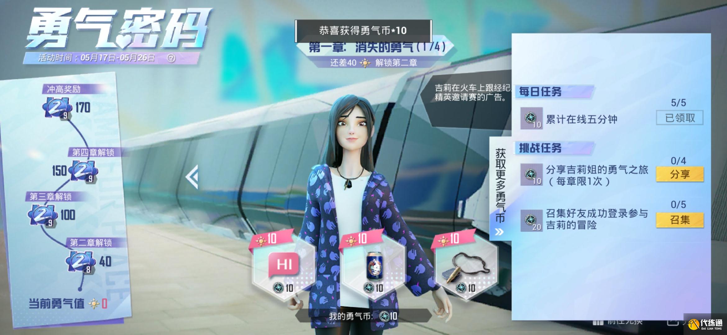 玩家在5月17日到5月26日期间,打开和平精英大厅主页面,在右下角点击活动,进入周年盛典第三章,找到勇气密码的活动图标,点击进入,即可开始活动。