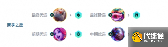 3、赛季之星前期可以选择娜美,中期如果有艾克也可以选,最后成型之后的赛季之星还是选择烬。