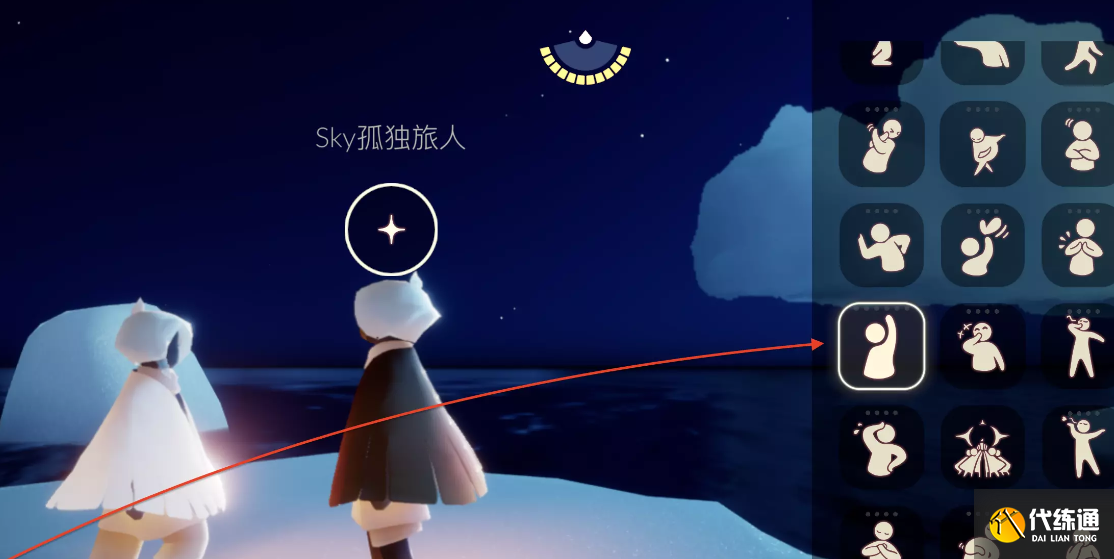 点击屏幕上方中间动 找到招手动作 面对好友 点击并完成招手即可