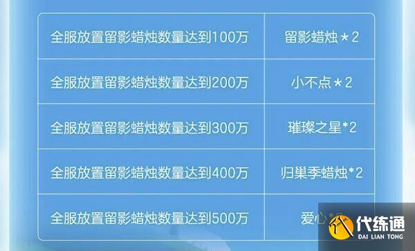 2、全服任务:当全服的留影蜡烛放置数量达到对应档次后全体玩家都可以领取奖励。