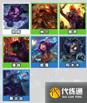 凯南、纳尔、图奇、潘森、妮蔻、阿木木、薇古丝