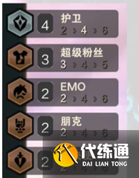 4护卫、3超级粉丝、2EMO、2朋克、2裁决使