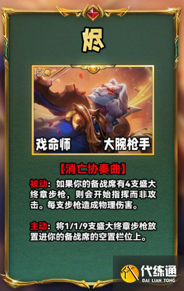 被动:如果你的备战席有4支盛大终章步枪,则会开始指挥而非攻击。每支步枪造成物理伤害。