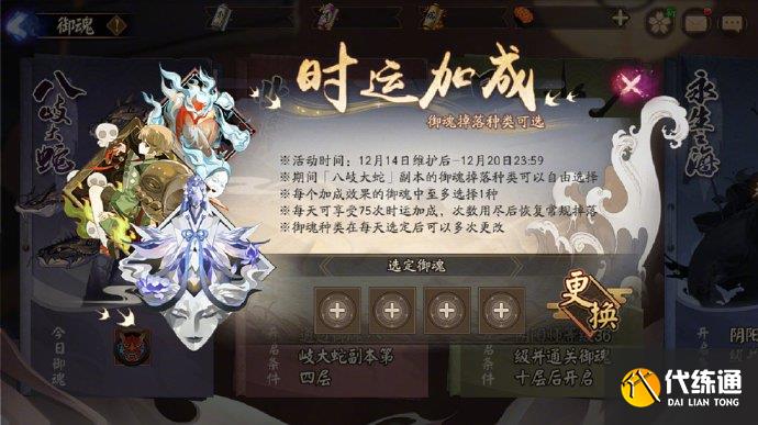 ※活动期间,「八岐大蛇」御魂副本的御魂掉落种类可以自由选择。