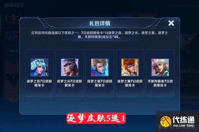 随着新赛季已经过去了一大半的时间,战令系统里面的奖励很多的小伙伴已经全部拿下,但是赛事战令中其实也是有奖励的,并不需要玩家充钱,也是可以领取到很多额外的奖励,尤其是30级的皮肤体验宝箱,这一次的赛事战令中的宝箱为逐梦系列的5款限定皮肤体验卡,在前一段时间也曾经返场过逐梦系列皮肤,有很多的玩家就比较犹豫到底值不值得购买,我们可以领取这个宝箱之后,选择自己喜欢的皮肤,等到皮肤返场的时候就知道值不值得了,最近连续两个月都返场了逐梦皮肤,进入6月份之后,另外的两款逐梦皮肤也有可能返场。