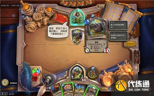 npc:会有几个阶段,3费灼热之握(消灭最左边的敌方随从),100血后转成4费粉碎(消灭最左边的敌方随从,并粉碎对手最左边的手牌),50血后转成5费大灾变(消灭最左边的敌方随从,并粉碎对手最左边的手牌以及牌库顶的牌)
