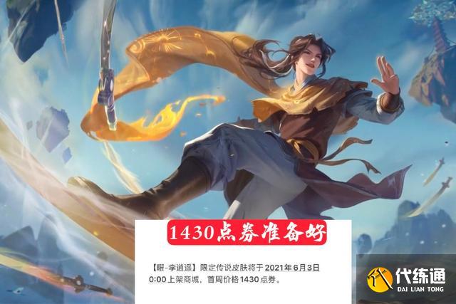 在今天就已经进入到6月份了,在这里也是祝愿王者峡谷的小朋友六一儿童节快乐,进入6月份之后,王者荣耀就宣布了一款新皮肤,这款新皮肤来自于仙剑奇侠传中的李逍遥,进入王者峡谷之后也会化身为东方曜的一款新皮肤,这款新皮肤被公布之后,瞬间引起了很多80后90后玩家的回忆,主要就是因为这款皮肤使用的是仙剑奇侠传游戏里面的元素进行设计,亮点十足。