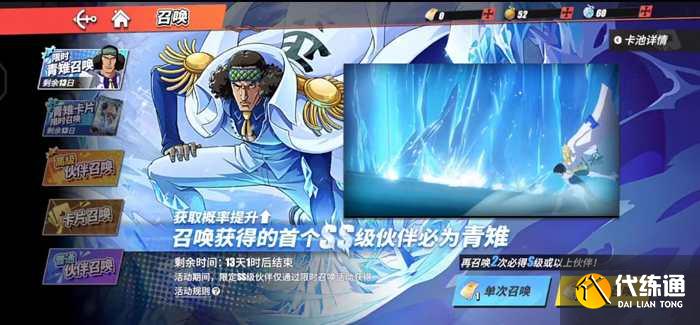 相信很多玩家在游戏内,都不知道航海王热血航线青雉什么时候出,毕竟作为海军三大将之一,青雉的实力是毋庸置疑的。本期就给大家带来青雉技能介绍,还不知道的小伙伴们,下面一起来看看吧。