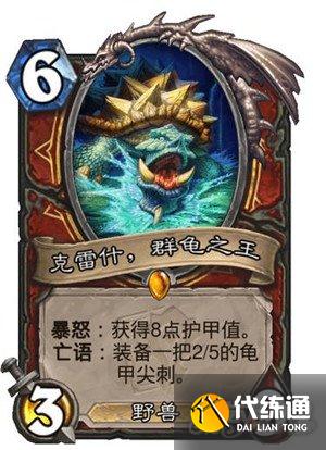 炉石传说克雷什群龟之王强度解析 克雷什值得合成吗,炉石传说最近公布了最新的迷你系列哀嚎洞穴的登录时间为6月4日,克雷什,群龟之王是一张战士的传说随从牌,相信很多玩家都想知道他的强度如何,下面就跟着小编一起来看看吧。