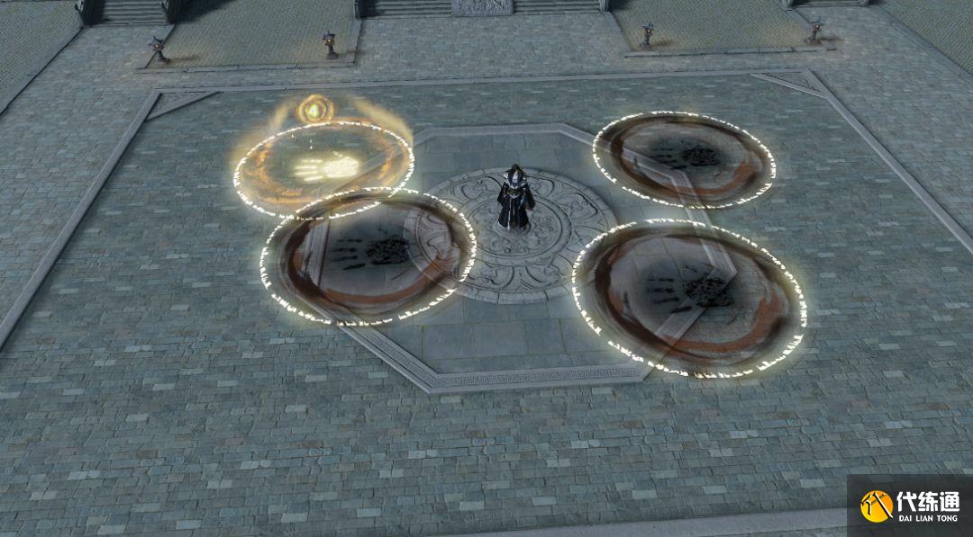 二技能叫破势阴阳掌法,阴掌就是一个黑色的圈,黑圈内伤害大,阳掌是一个金色的圈,金圈外面伤害大,阴阳掌是随机出现的,大家谨记:黑色手掌——远离,金色手掌——快进去这个口诀。