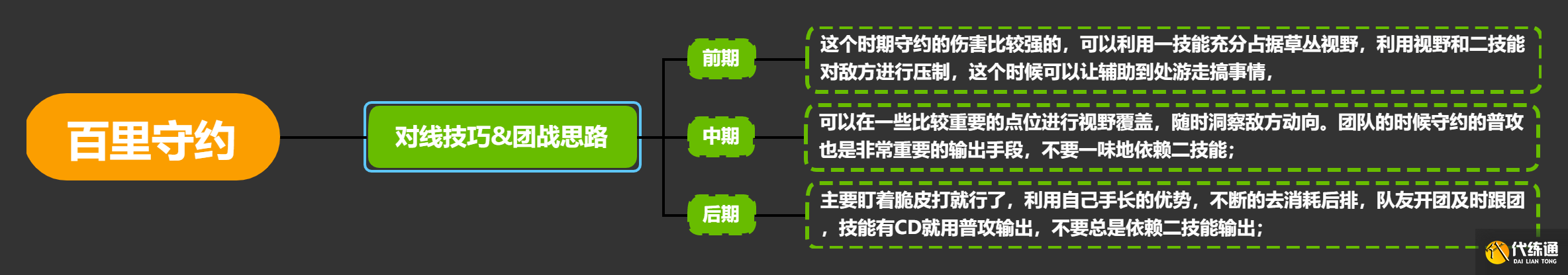 中期,可以利用一技能在一些比较重要的点位进行视野覆盖,例如野区,龙坑这些地方。打团的时候特别要记住的一旦就是,守约的普攻伤害也非常高,所以千万不要明明能一枪收掉残血,还一直傻不愣登地用2技能,最后让对面跑了这样队友不顺着网线去打你就不错了。