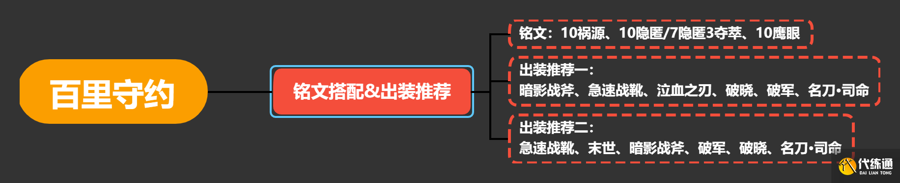 铭文:10祸源、10隐匿、10鹰眼(不建议搞暴击装备,那玩意对百里来说没用)