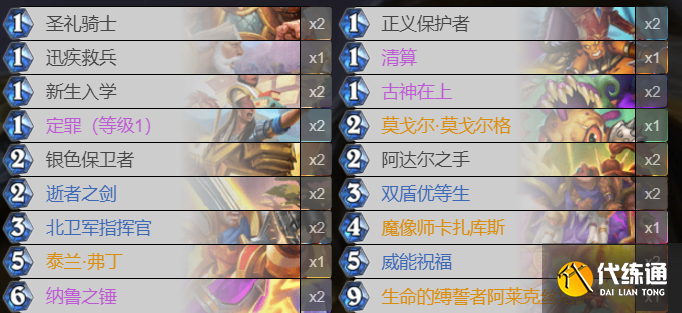 在对阵一些前期站场为主的速攻型卡组时,主要是以圣礼骑士这种奥秘体系的卡来作为前期过渡的主要方式,然后拖到威能祝福的轮次,利用威能祝福来拿下场面优势。