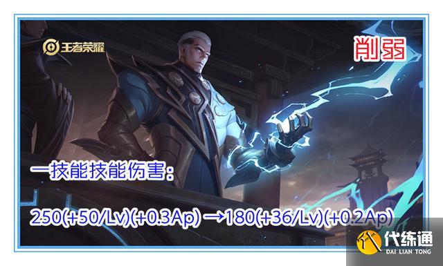 由一开始的250/300/350/400/450/500+30%ap加成调整为180/216/252/288/324/360+20%ap加成。
