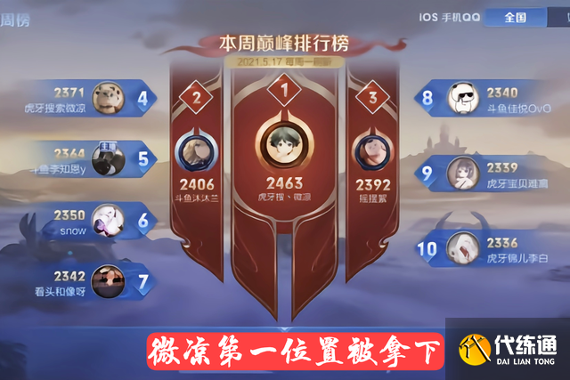 而在这个赛季有一个新的主播火了,他就是微凉,会的英雄比较多,并且也和北慕在同一个平台直播,在进入S23赛季之后,巅峰赛第一的位置经常是微凉占据,甚至还把自己的小号打进了前10以内,但是在最近这两天,已经连续霸榜巅峰赛第一很长时间的微凉,第1位置竟然被拿下了,这让很多的小伙伴比较意外,在这个赛季,很多玩家已经觉得微凉就是巅峰赛第一了,就等着最后赛季结束定榜了,但是没有想到也出现了意外。