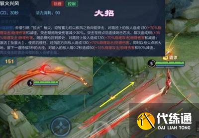 1、远距离的双重控制,有二段效果技能,云缨可以从远距离冲向目标,