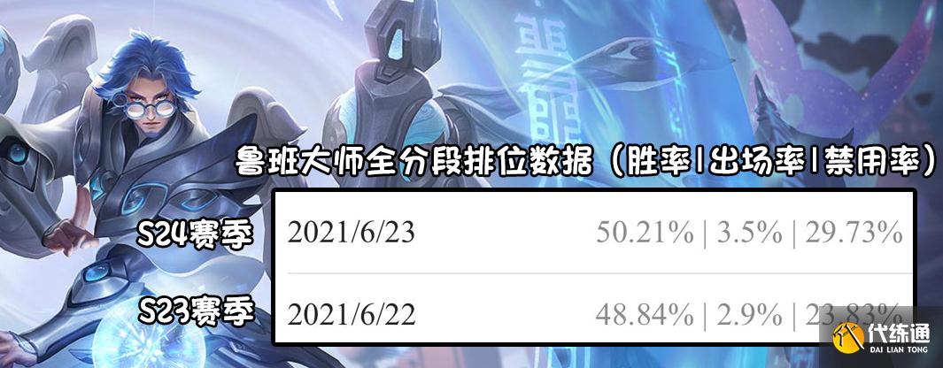 鲁班大师在这次调整之后,他胜率反而提高了1%左右,而禁用率因为赛季初的关系,也上升到了将近30%。