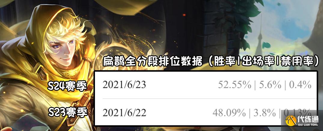 我们注意看扁鹊的胜率,在这次调整后直接提高了4%,而出场率也上升了将近2%,这也代表着,扁鹊或许真的能有所崛起。