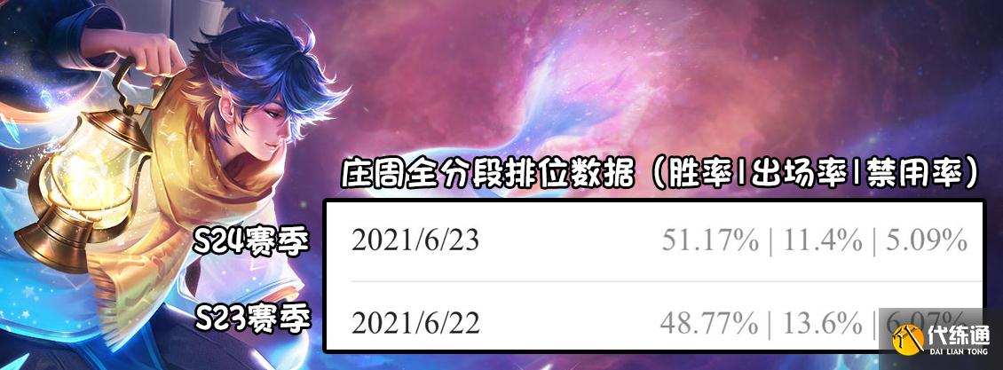 庄周的胜率提高了一些,更多的还是因为大招变为护盾的关系,后期对队友的增益对比之前,要高出不少。