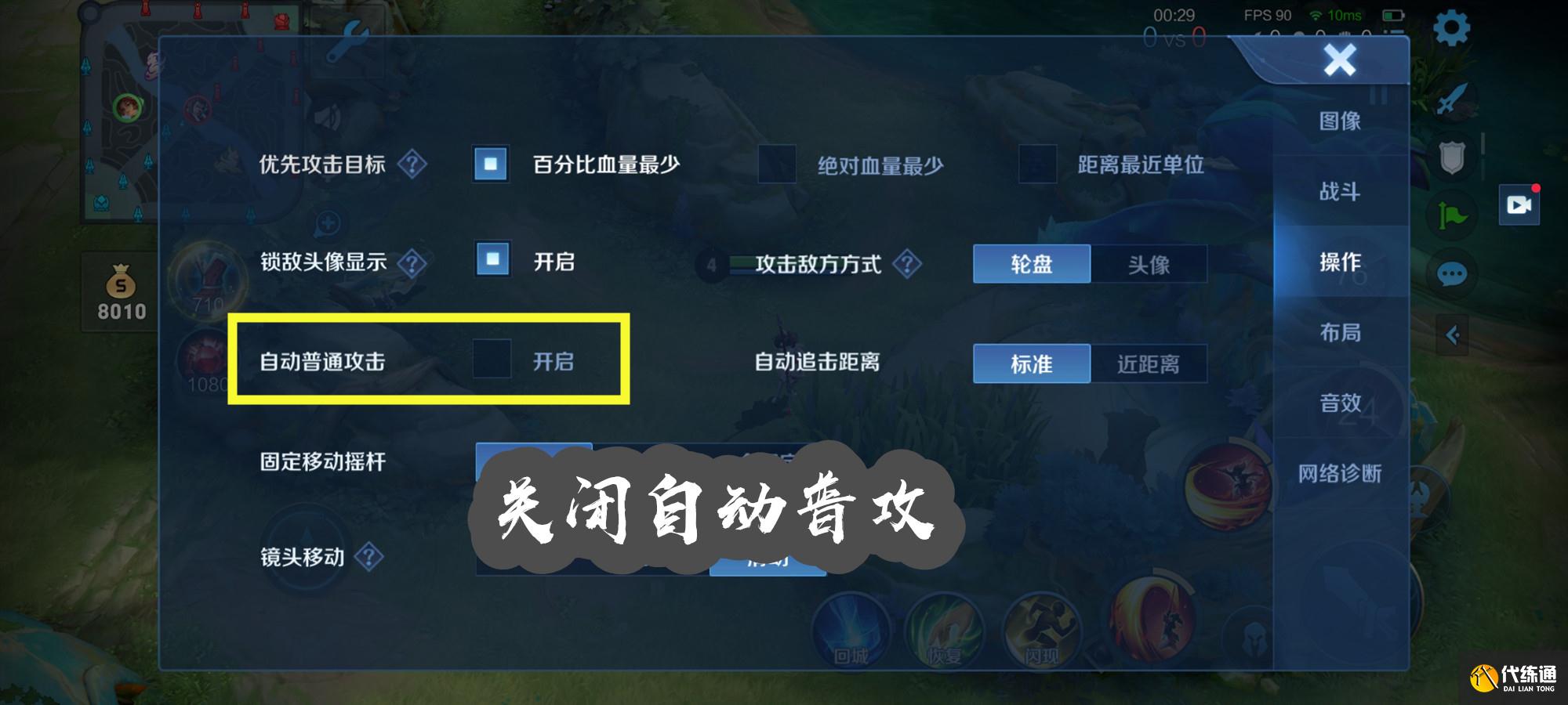 首先建议大家关闭自动普攻,因为云缨是需要刻意积攒枪意的,有的时候明明不想a出去,却因为自动普攻而不得不A,为了减少失误的情况,建议关掉。