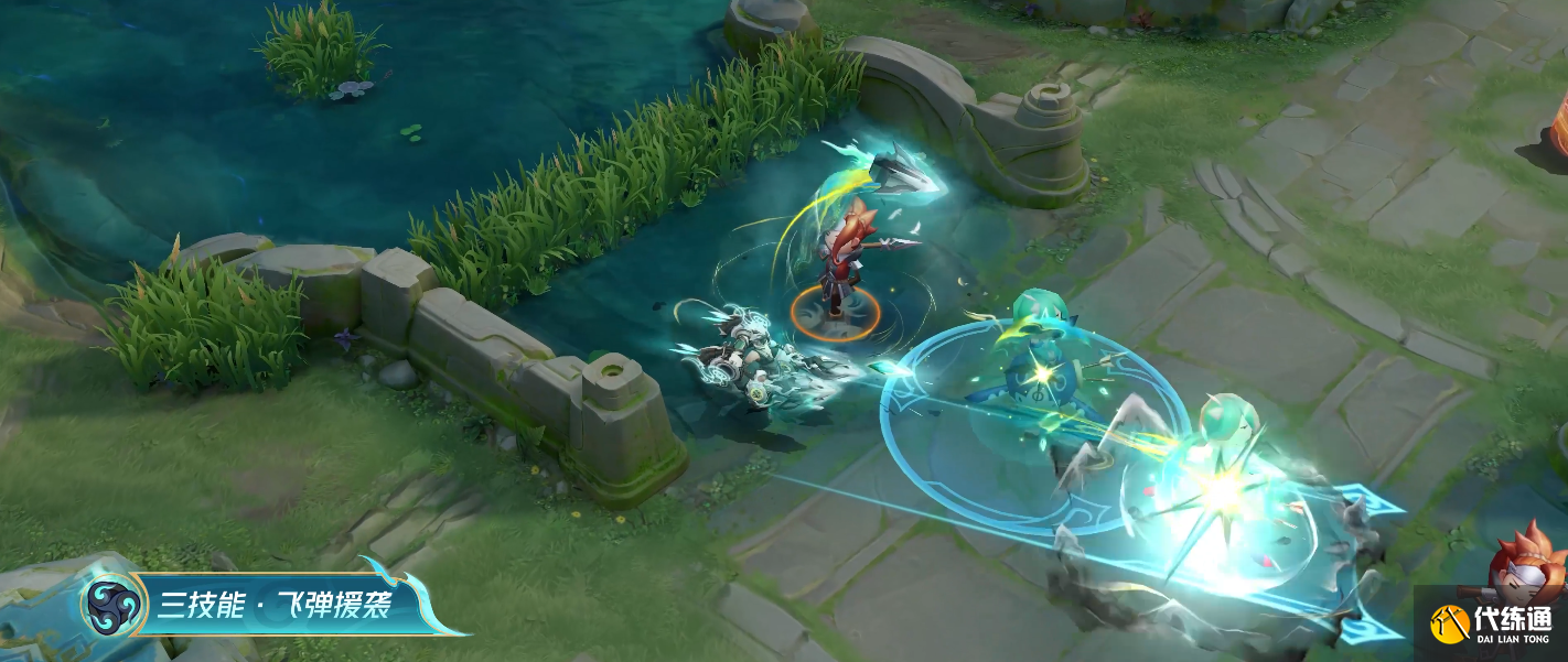 整体的技能特效以假山石为主要设计元素,也是力量来源;以绿色的小石子、假山水倒影置景。