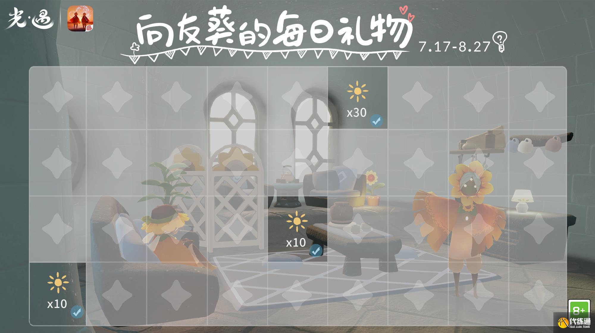 累计3天和陌生人一起坐在向日葵长凳上,可获得阳光*100、爱心*2