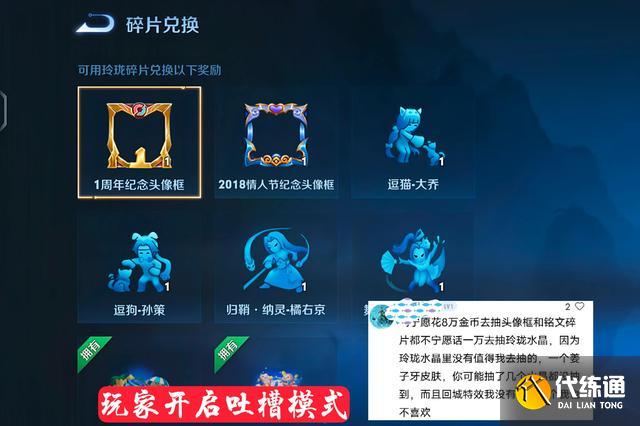 在这个玲珑夺宝中,所有的奖励基本上和荣耀水晶差不多,也是包含了一颗水晶,加上一些皮肤英雄之类的,我们也可以获得玲珑碎片来兑换一些奖励,也可以使用玲珑水晶来兑换奖励,经过实际测试,一颗玲珑水晶可能是价值10w金币,本来很多的玩家可能金币数量已经达到了几十万上百万,所以都想通过玲珑夺宝系统来转换一下奖励,但是当看到所有的奖励之后,很多的玩家开启了自己的吐槽模式。