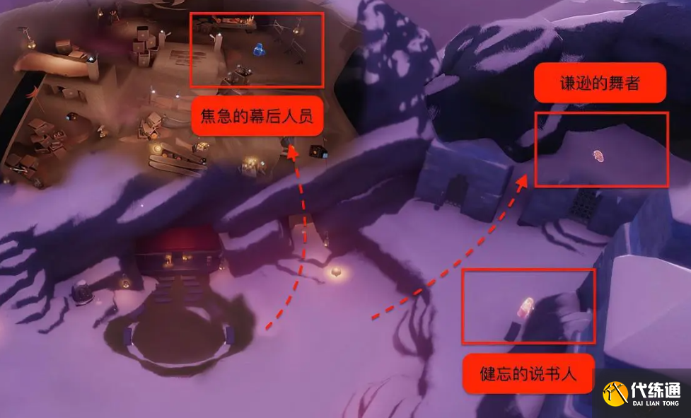 前往 [圆梦村剧场] 重温剧情任务四 任意选择三位先祖牵手即可
