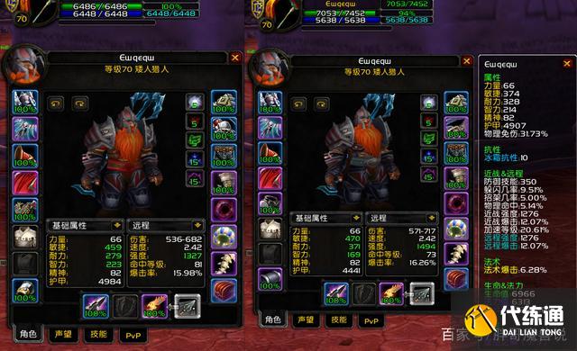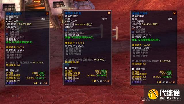 魔能猎手套装的部件同样是胸甲,护腕以及腰带,这与另外两套装备完全一致,因此魔能猎手与另外两种套装的属性区别可以非常直观的对比出来。