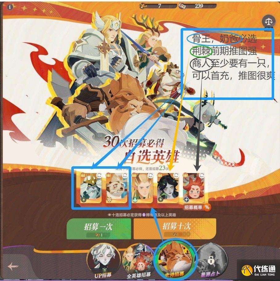 新手【普通卡池】第一个十连必出【荆棘】、第三抽必出【奶爸】【荷叶】还有【其他】两只辅助,我们刷【初始号】唯一的操作空间就是这第30抽,如果非要刷 【 国际共识】是建议刷出【奶爸】,这样一路都会比较顺畅,羁绊也好搭配!