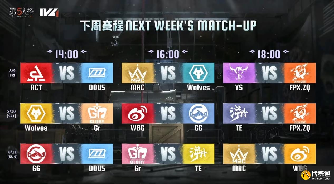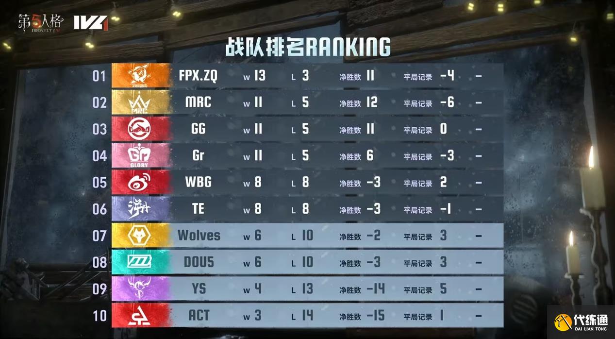 目前季后赛名额已经基本锁定,FPX.ZQ 稳住了榜一,本周FPX.ZQ 求生者状态回归; MRC、成都GG和Gr战队以相似的积分分别为列二三四名,WBG战队在本周给到粉丝很多惊喜,连胜两局击败强敌Gr战队,稳住了季后赛的门票,求生者方配合渐入佳境;TE战队监管者也成功度过新手期,进步神速,TE战队季后赛同样未来可期。