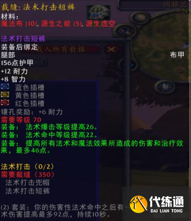 ①法术打击短裤:暗影迷宫掉落的法术打击短裤图纸在前期是非常有名的,图纸制造出来的装备高法伤高暴击高命中,尤其是它还自带3个宝石槽,对于玩家来说可是相当有价值的。如果你前期没准备穿t4套装,我想它是你的不二选择,可以说在t4阶段,它是法系散件毕业裤子。