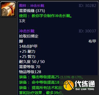 ④冲击长靴:图纸同样掉落于t5副本,高暴击高命中而且三维属性极佳,在前期属于法系的极品鞋子了,分身觉得这鞋子相当不错,值得推荐。