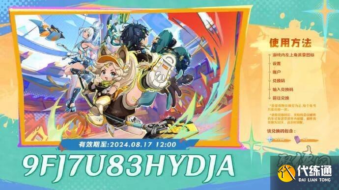 游戏内左上角派蒙图标-设置-账户-兑换码-输入兑换码-前往兑换