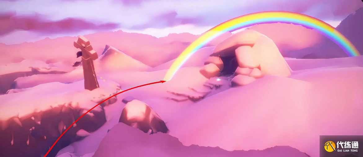 在彩虹一端的石圈内停留60秒即可完成任务
