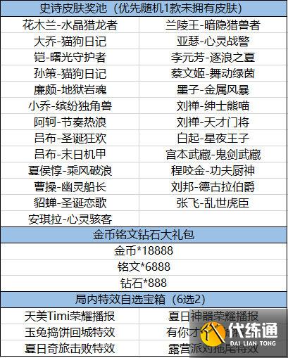 奖励1:随机1款史诗皮肤(优先随机未拥有的皮肤)