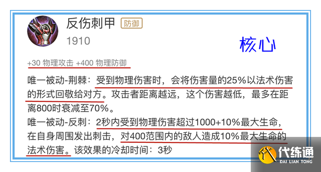 但在我看来,虽然上面的装备都很重要,但是最能给赵云带来质变的还是反伤刺甲。因为赵云所有的伤害都是依靠近身打出的,所以既有物攻又有物抗,还有荆棘+反刺被动的反伤刺甲和赵云无比契合。