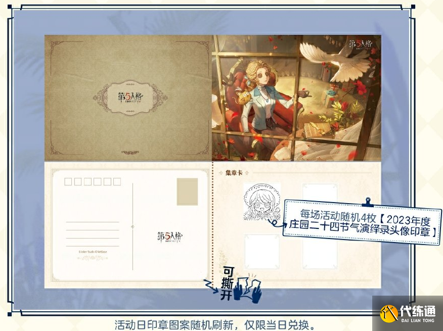 访客活动期间(9月7日-8日)带话题#第五人格24节气#打卡拍照/发布视频在微博超话 /小红书/抖音,或话题#第五人格二十四节气演绎录#打卡拍照/发布视频在哔哩哔哩,并@ 第五人格各官方账号,即算作有效参与活动。有概率获得官方翻牌。被翻牌的玩家可获得周边礼包一份。
