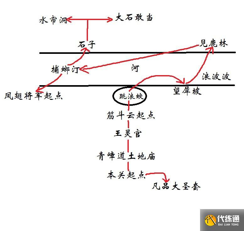 5、打完跳浪蛟后,从筋斗云起点出发,往右来到河边高地上的望犀坡。望犀坡和见鹿林都有大大的闪电,很好发现。